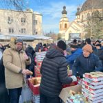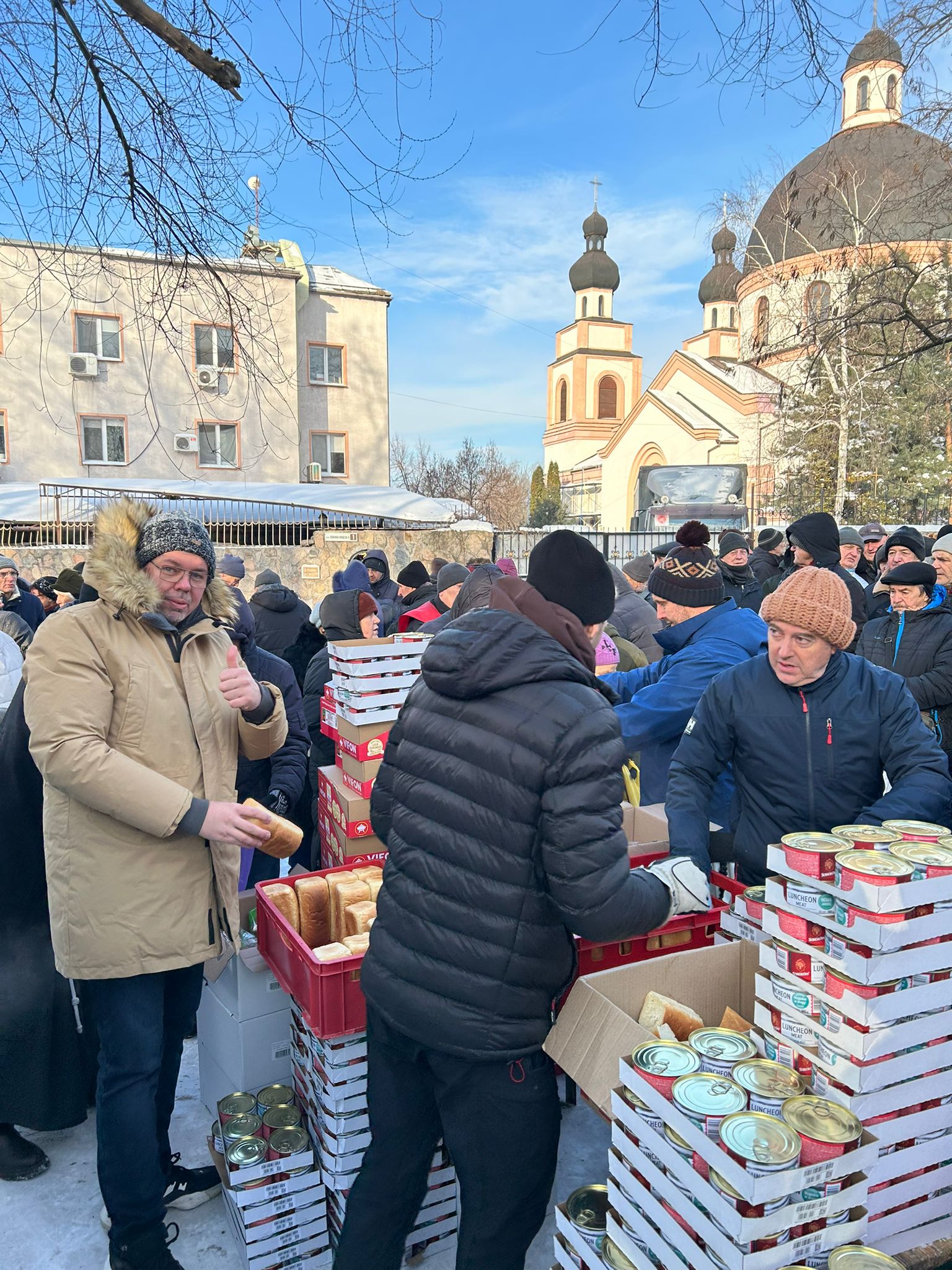 Albertyni z Zaporoża wydają żywność 4 razy w tygodniu na placu obok konkatedry rzymsko-katolickiej. Bracia wszystkim rozdają też chleby upieczone we własnej piekarni. Pieką teraz po 1200 chlebów, bo tyle ludzi przychodzi po żywność.